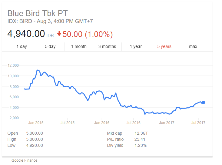 Other companies we looked at in Indonesia are of course Uber and Grab as well as two other companies – first is Blue Bird Group, Indonesia’s largest taxi operator, which suffered quite a bit of damage after competitors like Go-JEK (GoJEK) , Uber and Grab entered the market and wiped out 3/4 of their market value.