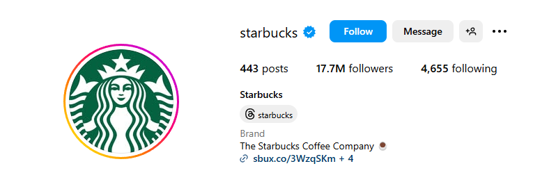 For example, Starbucks’ bio says “Time for Coffee”, which is fun but also informs the audience about what the brand does.