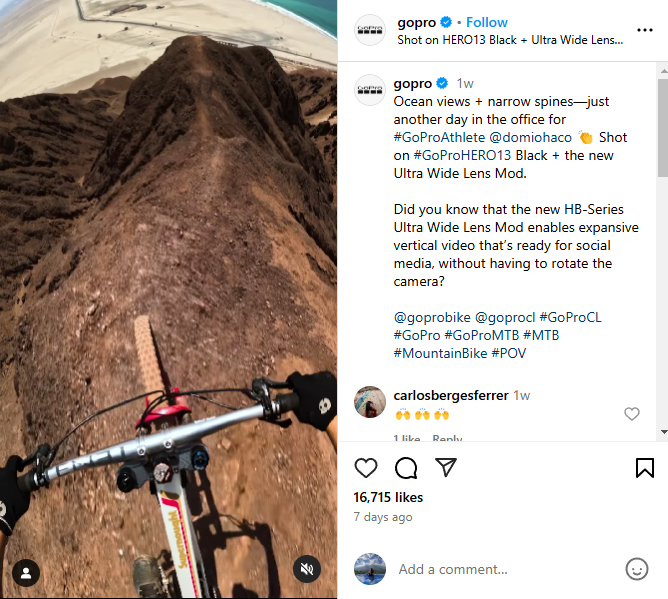 GoPro’s Instagram posts always have branded hashtags, whether they post UGC or their content. The brand also uses different variations to ensure search optimization.
