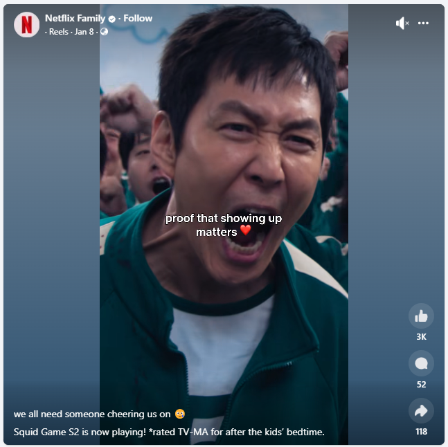 Netflix cracked the reel game, driving phenomenal engagement and shares on their social handles. The brand posts clips from their viral shows. For example, the above Facebook reel is a fan-favorite moment from the long-anticipated Squid Game Season 2.
