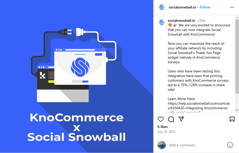 For example, Social Snowball announced its integration with KnoCommerce on Instagram.