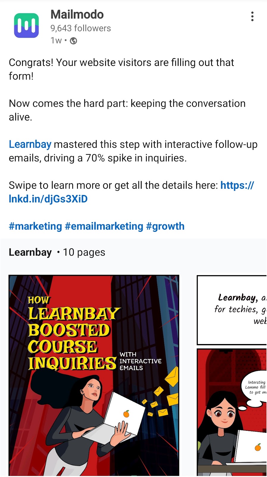 For example, Mailmodo, an email marketing platform, added only 3 keywords to the above post as hashtags. However, they ensured the tags were relevant to their brand and post so the right audience could find them.