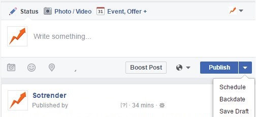 Not in a distant past it was only possible to schedule a post on a Facebook Page. Now it has changed and every Facebook user can schedule post on their personal profile. To do that you have to start creating a new post and then some icons and options will appear on the left side of ‘Post’ button. One of them – the last one – is calendar icon. When you click it you will be able to set the date (year, month, day) when you’d like the post to be published.