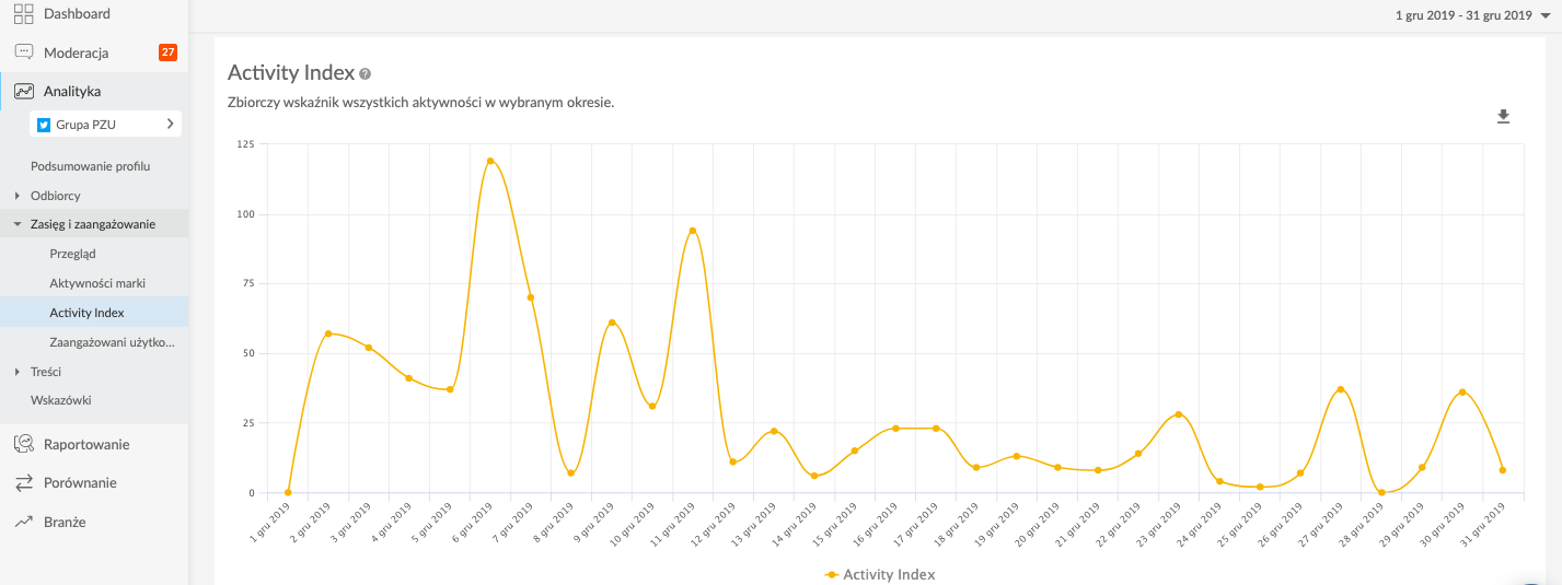 Activity Index dla Instagrama przedstawiony jest także w ujęciu dziennym.