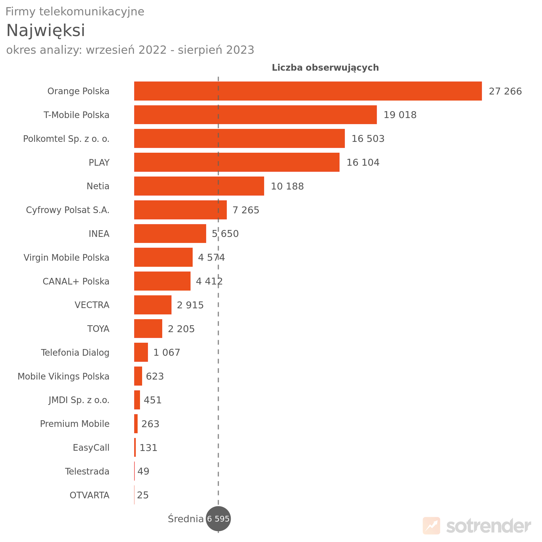 Największym profilem wśród badanych firm telekomunikacyjnych na LinkedInie było Orange Polska, gromadząc ponad 27 tys. obserwatorów na swojej stronie firmowej.