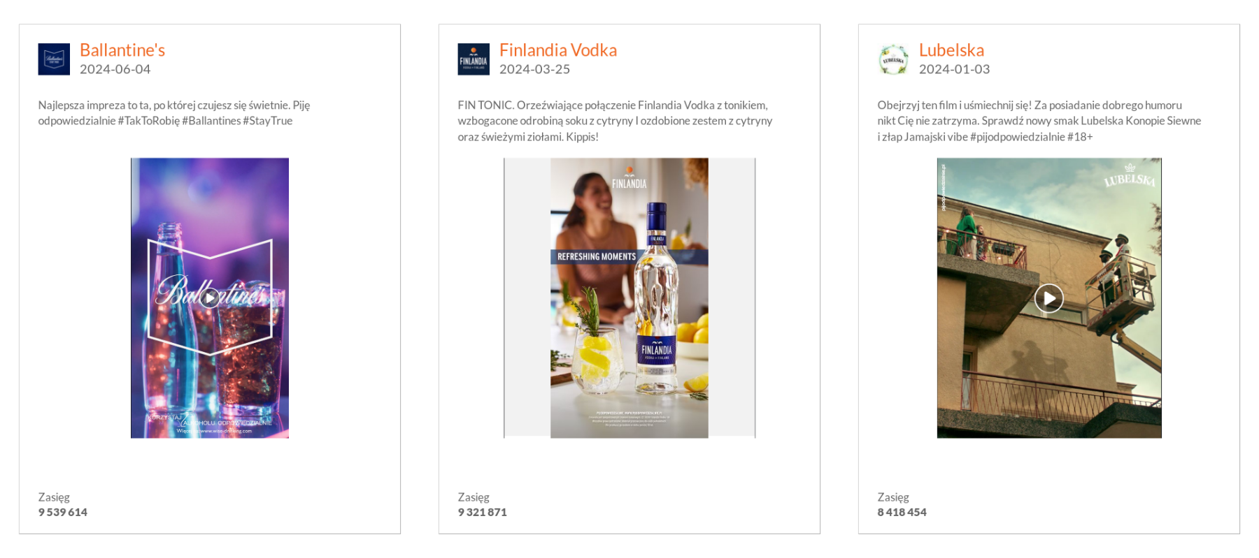 Z kolei marki, które tworzyły reklamy o najwyższych zasięgach, należały do branż: