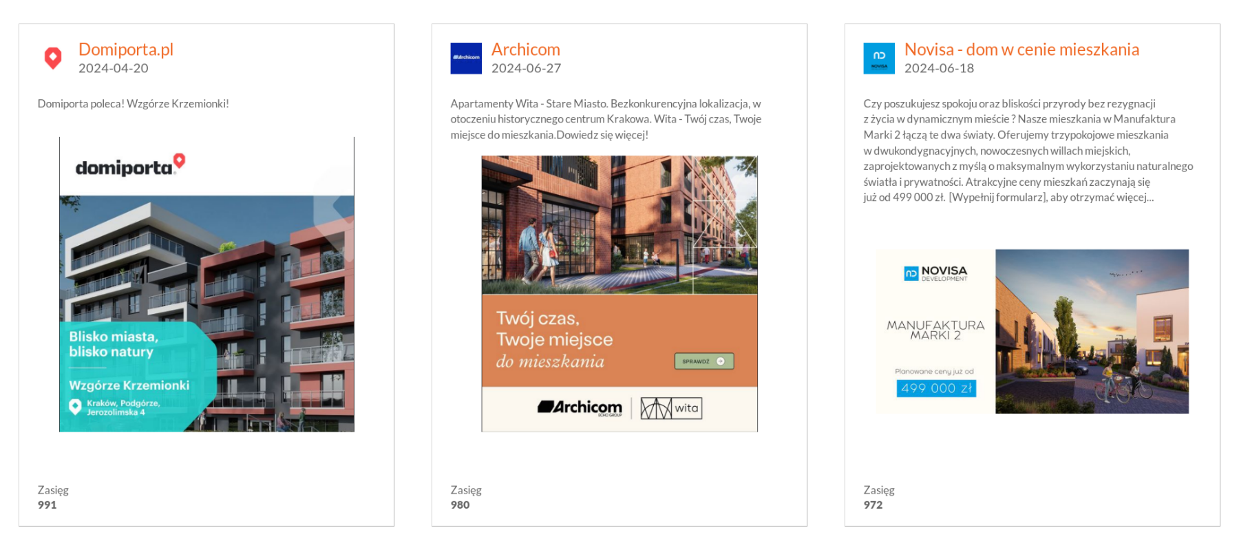 Reklamy o niskim zasięgu były publikowane głównie przez marki, którym zależy na precyzyjnym dotarciu do konkretnych lokalizacji.