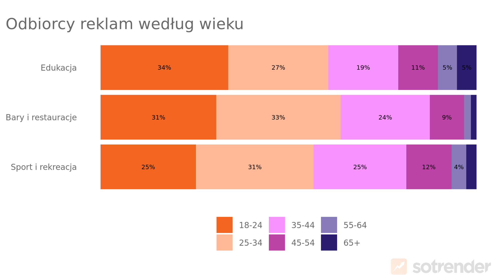 Do osób w wieku 25-34 najczęściej docierały treści z branż: