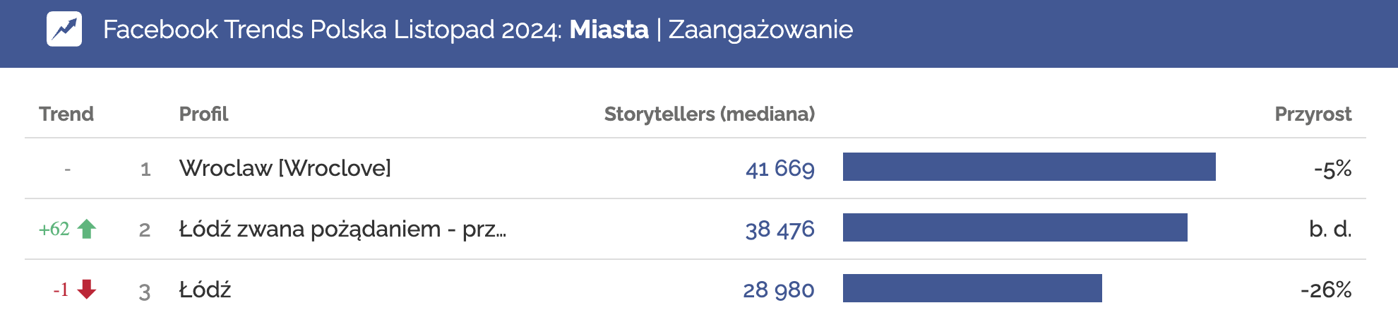 W kategorii Miasta, w zestawieniu zaangażowania wspomniany profil awansował o 62 oczka w rankingu i znalazł się na wysokim drugim miejscu, “spychając” oficjalny profil miasta Łódź na najniższe miejsce podium.