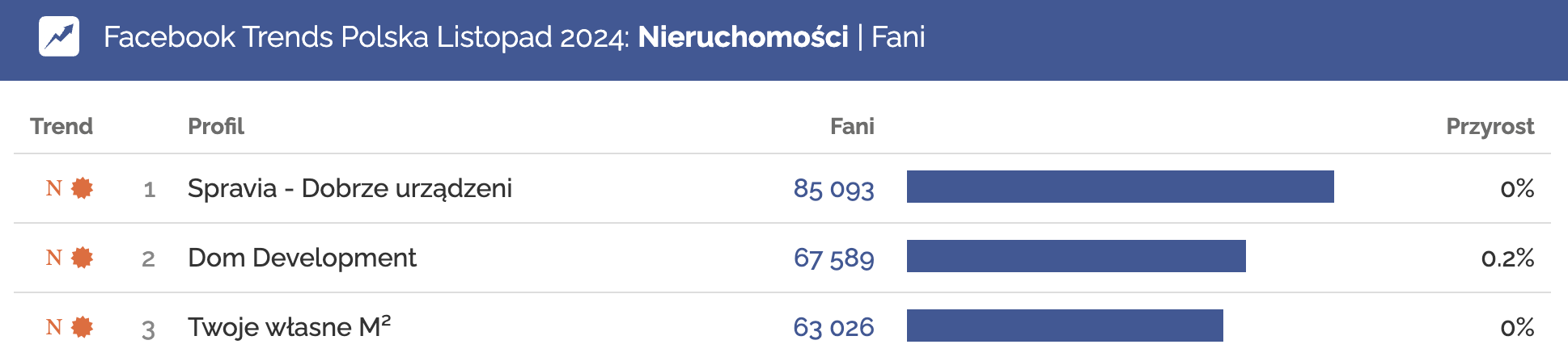 Na podium zestawienia największych profili, które nie wydaje się by mogło ulec zmianie w najbliższym czasie, znalazł się profil Spravia (Budimex), Dom Development oraz Twoje Własne M2 (RONSON).