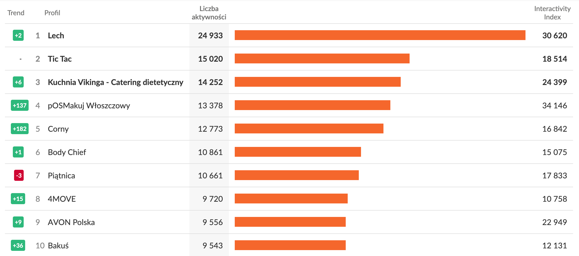 W kategorii FMCG tym razem wyróżnił się profil pOSmakuj Włoszczowy, który w rankingu aktywności awansował o imponujące 137 pozycji, osiągając 4. miejsce.