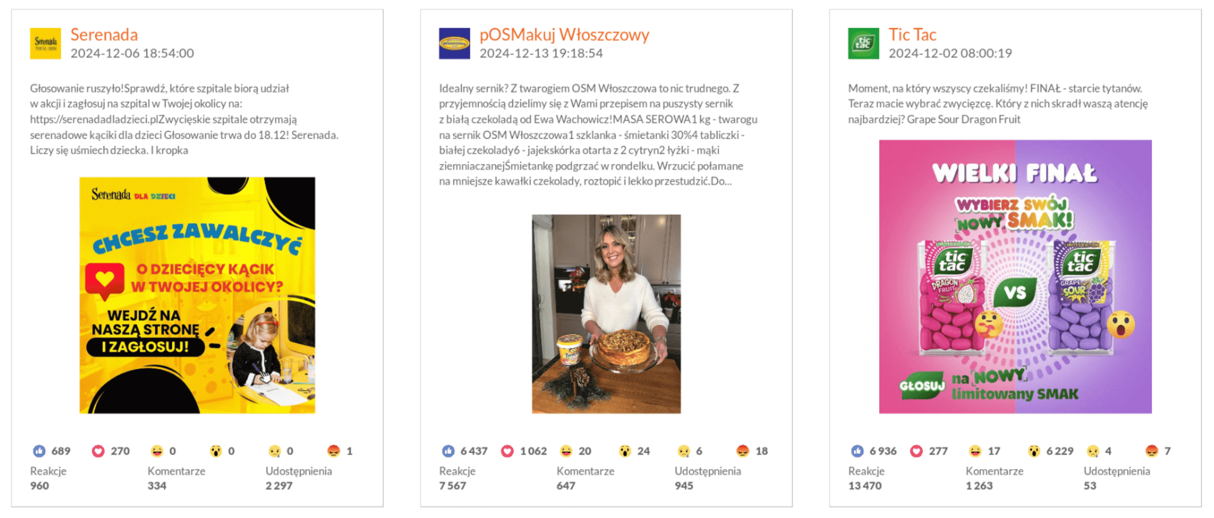 Duży sukces marki to efekt przepisu na idealny sernik prosto od Ewy Wachowicz z twarogiem ich produkcji. Post z tym przepisem znalazł się na drugim stopniu podium wśród najlepszych treści grudnia.