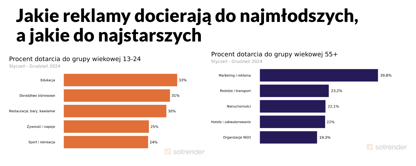 - Największy odsetek reklam do grupy wiekowej 55+ kierowały w minionym roku firmy z branży marketingowej i reklamowej.