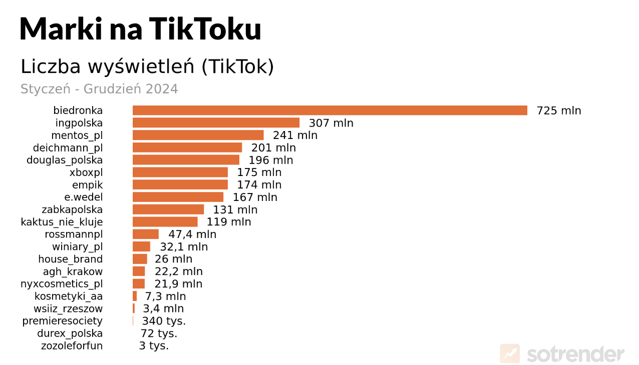 Choć platforma udostępnia nieco mniej danych analitycznych niż Meta, sprawdziliśmy, jak marki najbardziej „młodzieżowe” na Instagramie i Facebooku radziły sobie na TikToku – platformie, z której najmłodsi najchętniej korzystają.