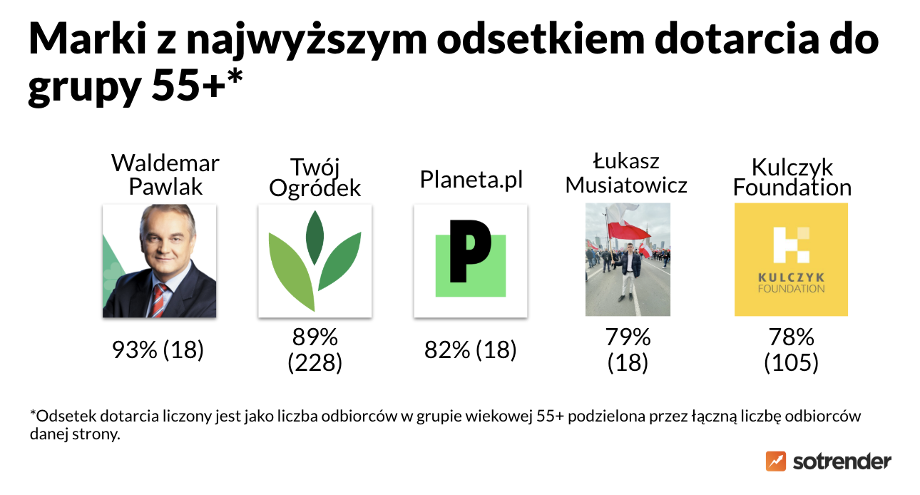 - Ponad 80% reklam Planeta.pl (serwisu z newsami klimatycznymi) targetowanych było na osoby 55+.