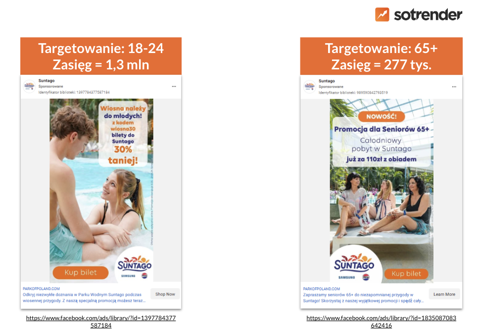 Skupiliśmy się na komunikacji reklamowej w ekosystemie Meta (Facebook, Instagram) oraz na TikToku. Są to nie tylko główne kanały social media na marek B2C, ale także ekosystemy, w których reklamodawcy mają dużo możliwości precyzyjnego targetowania reklam, m.in. właśnie ze względu na wiek.