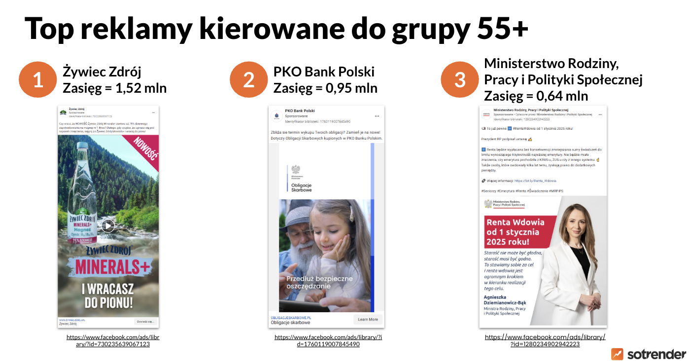 - Największe zasięgi reklam kierowanych do grupy 55+ osiągnął w 2024 roku Żywiec Zdrój.