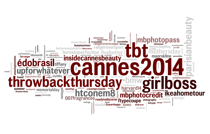 - Hashtag words connected with current events – in May big brands used words connected with Cannes Film Festival, Mother’s Day, Memorial Day and FIFA World Cup in Brasil,