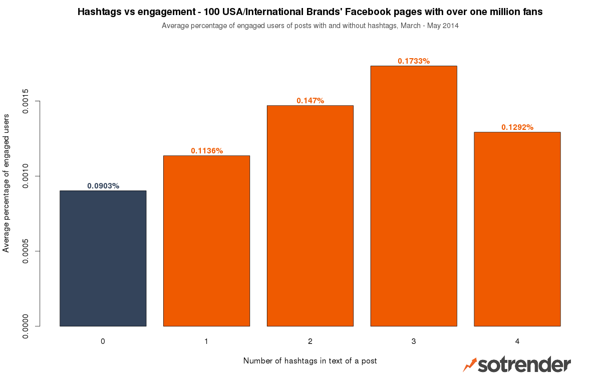 Users love Facebook hashtags! In May 2014 the number of hashtags in users’ posts was two times higher than the number of these posts! Sotrender decided to check the influence of using Facebook hashtags in the posts of brands. We examined a hundred of American and International brands’ pages with over one million fans. Check what you can learn from their Facebook performance!