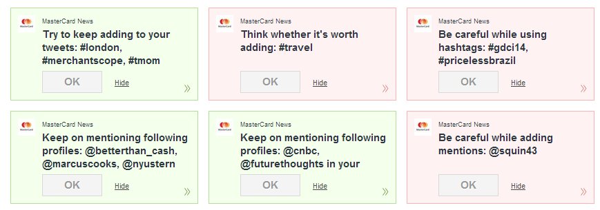 Today we’re presenting new set of automatic data-driven recommendations about the use of hashtags and mentions on Twitter. They allow you to choose the most and the least effective hashtags. They will also show mentions that can increase or decrease the engagement of your followers.