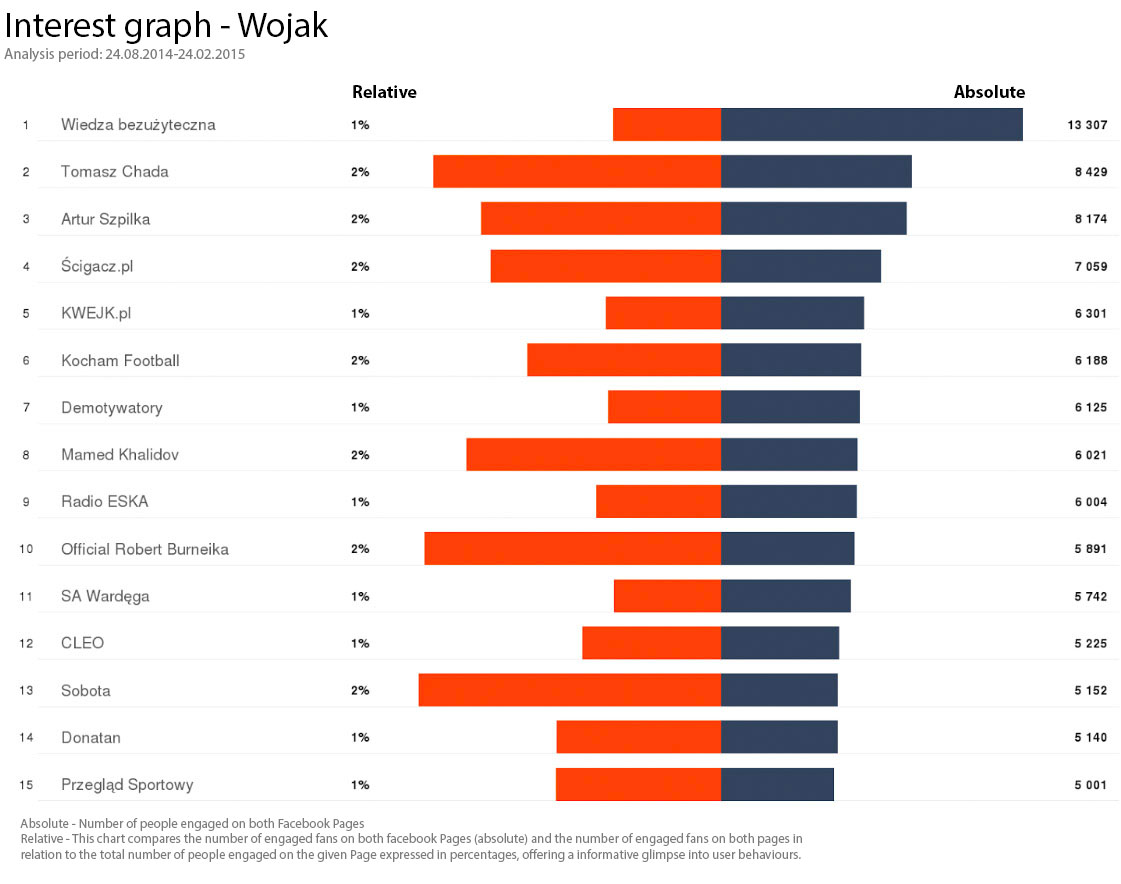 For each group we can conduct an interest analysis. You can check what is interesting for users engaged in lifestyle posts on your Page, for example. Another possibility is to check what other Pages engage users who also engage in your product posts. Recently, we conducted an analysis for a cosmetics brand, and it turned out that its fans engaged themselves on a competitor’s Page quite often. The competitors intensely promoted a cosmetic from a very specific category. Our customer has a product from the same category in its portfolio, but never tried to communicate it on Facebook before. Based on our analysis, we could show how to improve communications, and what kind of posts and information will have an effect in bettering the engagement of users.