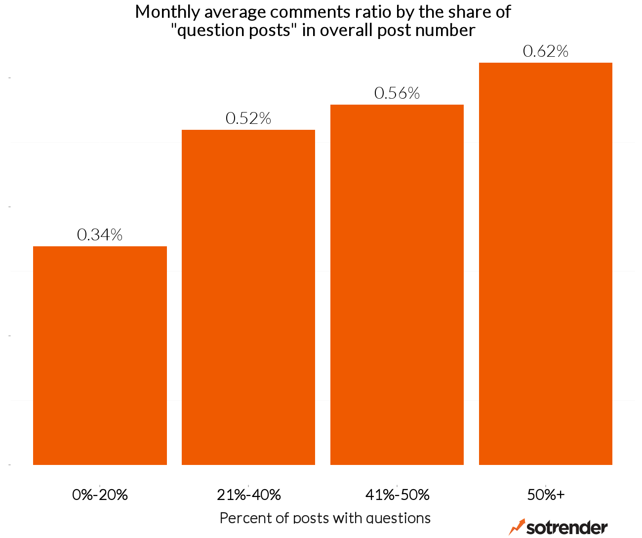 Our conclusions? Yes, questions attract more user activities (although not as many as one may think), especially in the form of comments. These comments can often form a bigger story so asking questions in a post may seem like a good solution. On the other hand, it’s important to remember that including questions is not as important as one would think.