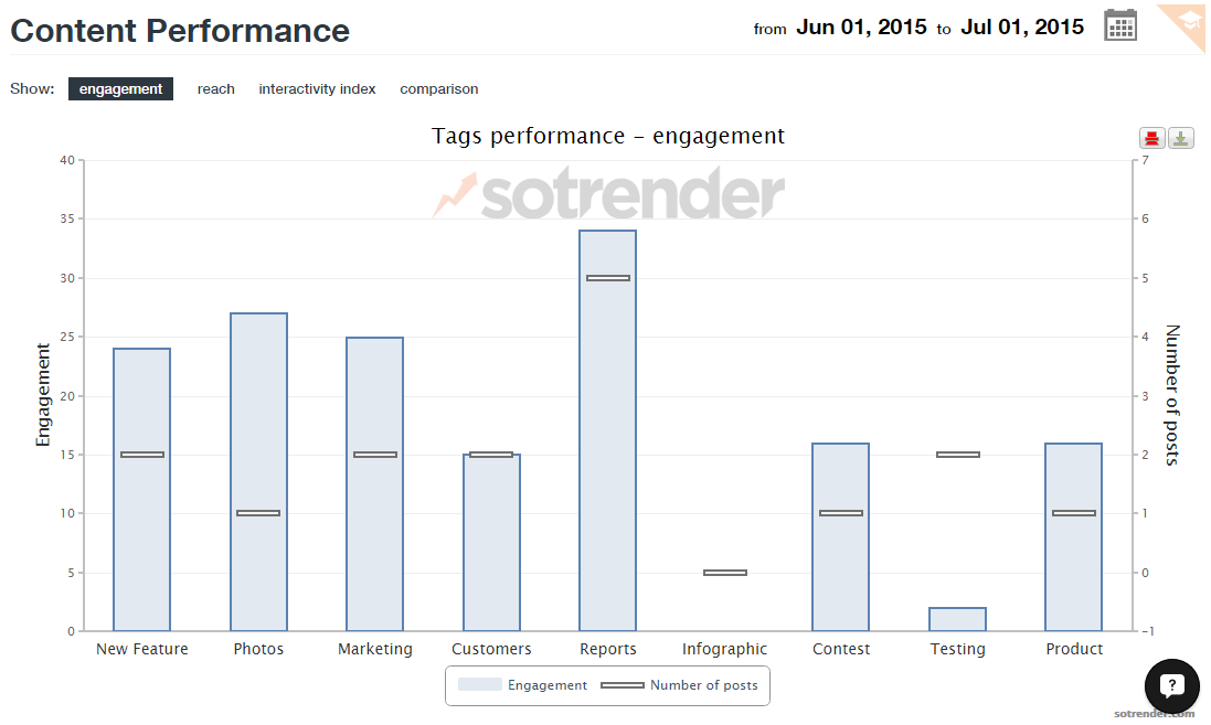 How do you pick content that is really engaging, and that your audience is interested in reading & sharing? You can use the Content Strategy Module available in Sotrender. It lets you organize your posts into categories & compare them, seeing which groups of posts are performing better than others.
