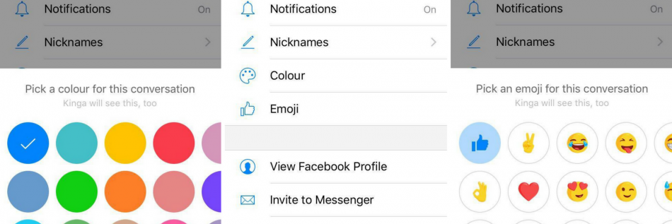 - Another changes for messenger include customizing colours, ‘main emoji,’ and nicknames in the app. Now your ‘darling’ can really be your ‘Darling,’ your main emoji doesn’t have to be the default thumb, and you don’t need to exchange blue messages. These are small changes, but definitely enjoyable for many users.