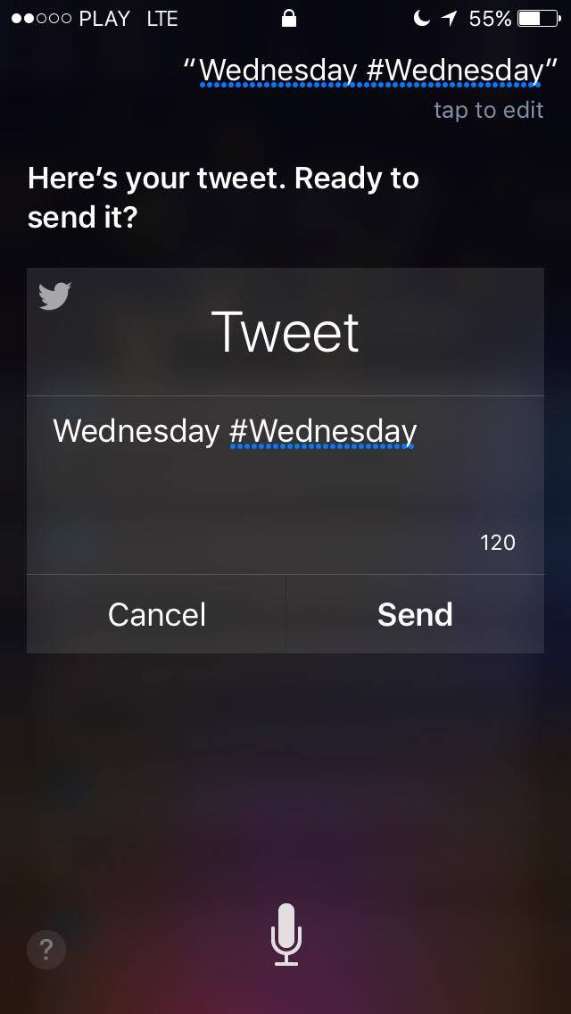 It’s enough to tell Siri “Send a tweet, ” say what you want to tweet (including hashtags!), and confirm before sending. Have you ever tried it?