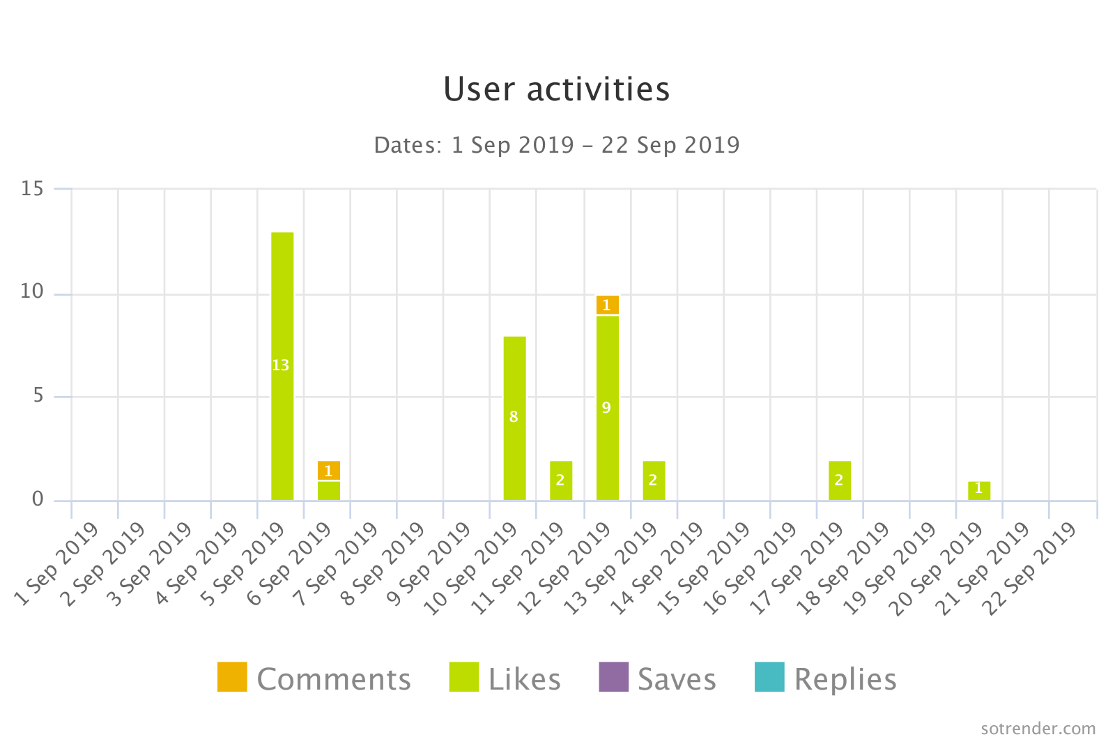 Similarly, Instagram doesn’t allow native reposting, so the Activity Index looks like this:
