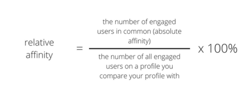 In previous example our selected profile and the Coca-Cola profile have a relative affinity index of 0,01%, meaning that 0,01% of all engaged users on the Coca-Cola profile are engaged on our profile as well.