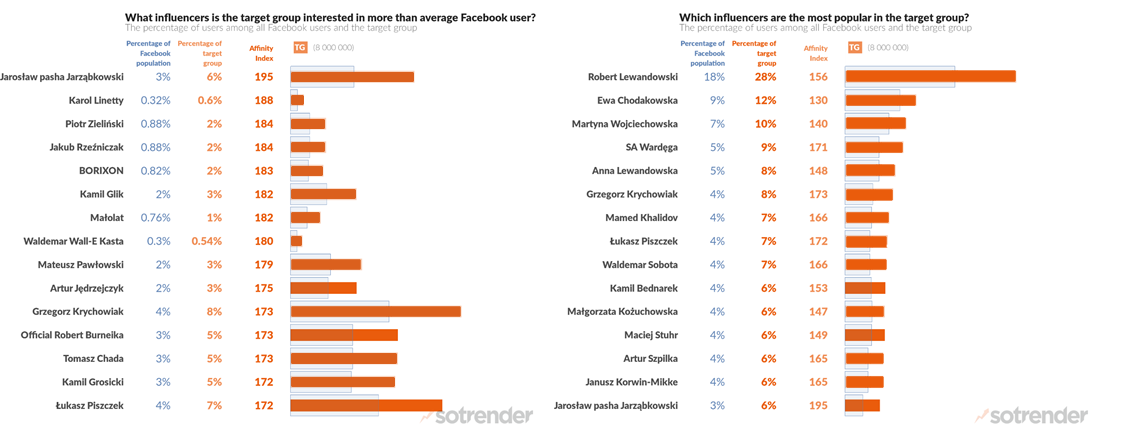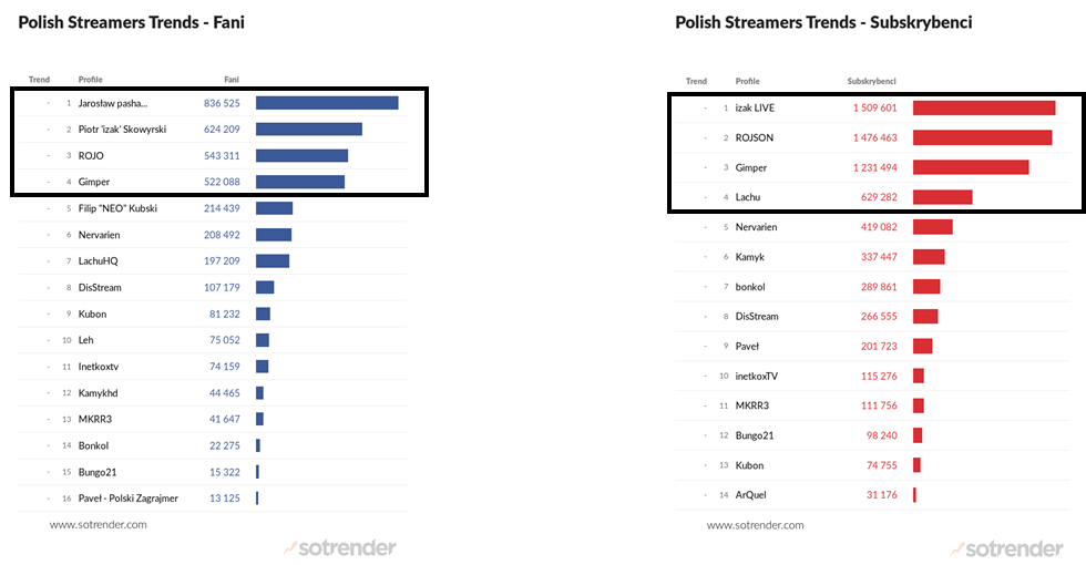 Keep in mind that the chart on the right (with Robert Lewandowski and Chodakowska topping the list) represents the most popular influencers to Polish gamers in general, while the one on the left (with Jarosław pasha Jarząbkowski and Karol Linetty topping the list) represents the most popular for Polish gamers exclusively.