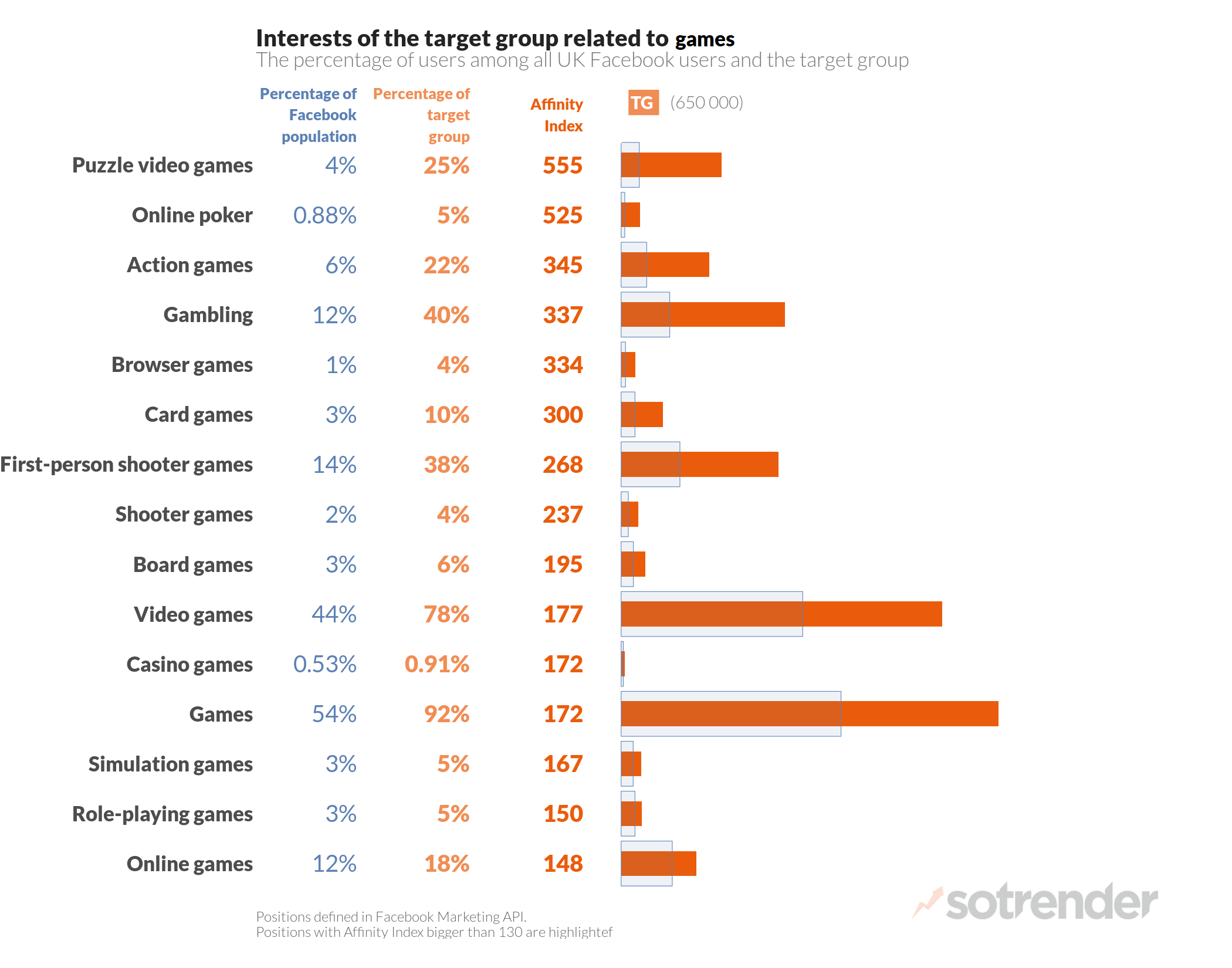 We’ve digged a bit more into what the Fifty Shades fans in UK are interested in. Some of the results are unsurprising, but others are quite interesting! For example, we found that the target audience has a high interest in video games and gambling!