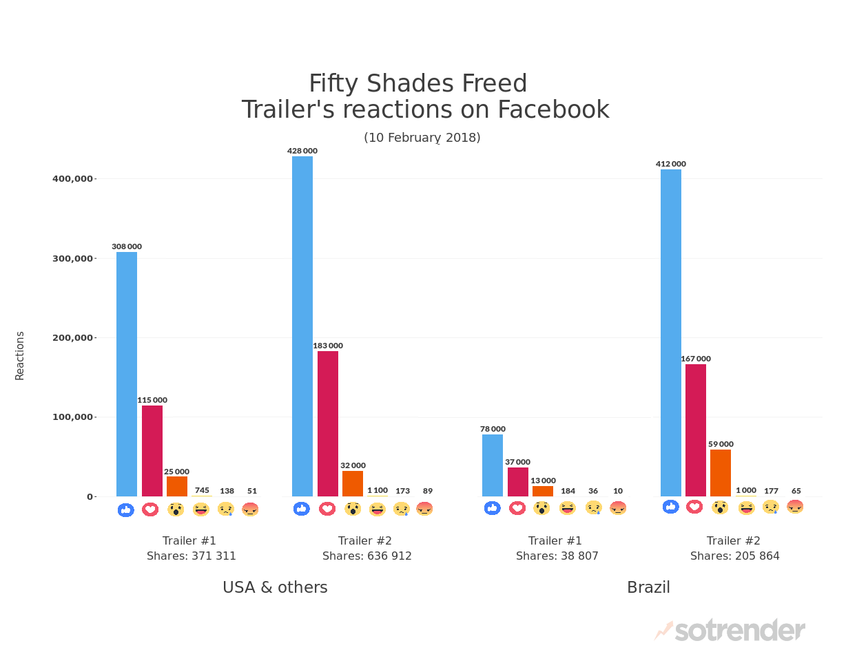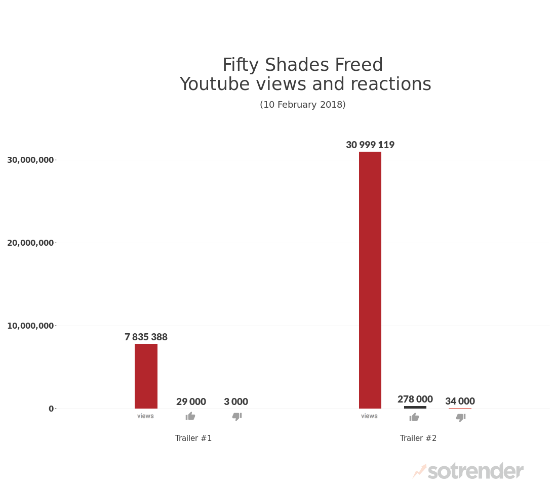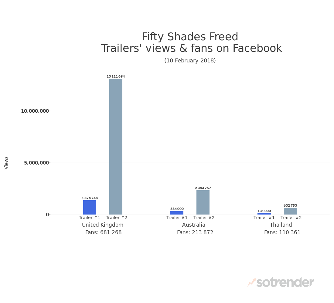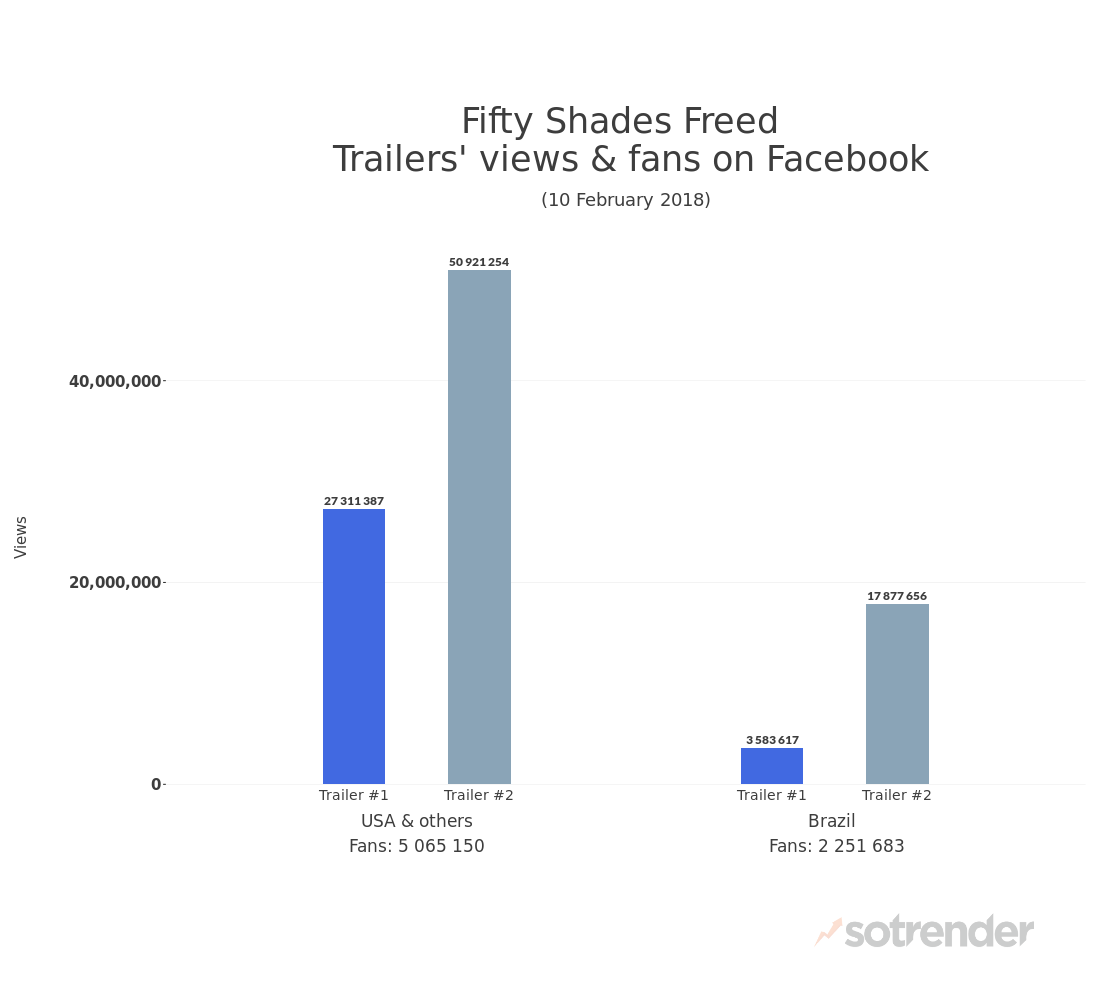 We’ve analyzed The Fifty Shades trailers both on Facebook and YouTube in different countries. The results? Facebook wins!