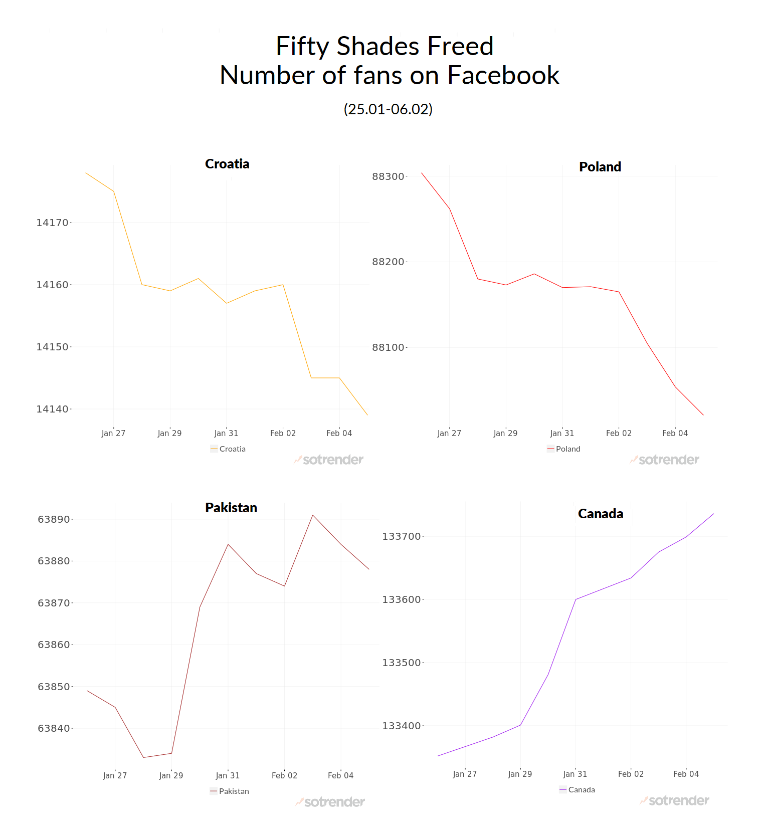 So the entire world isn’t equally in love with Fifty Shades. Marketers should always be aware of such a situation. If they care only about the overall results, focusing on specific markets, they could easily lose control. They’d miss out on important factors which affect their Page. With smaller brands, it’s especially important to put more work and effort into other markets. For giants such as Fifty Shades which don’t have to fight for attention, it’s always way easier to achieve success.