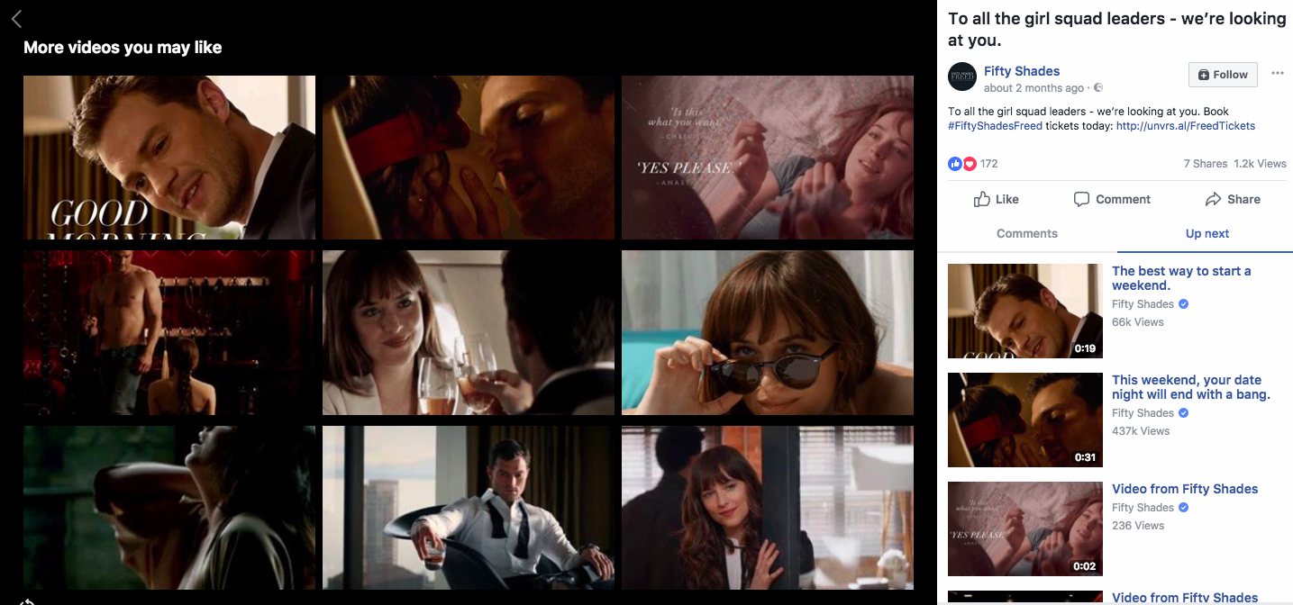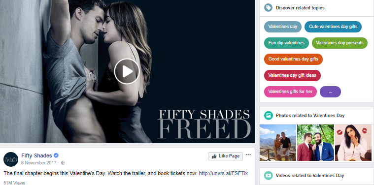 So once someone is interested in Valentine’s Day, Facebook will automatically suggest similar content. For Fifty Shades, or any other brand, it’s a great opportunity to reach more people. This is why it is so important to correctly describe and tag uploaded videos – you will reach a wider audience and gain new users.