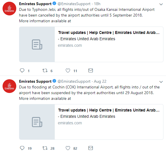 - Emirates focus on direct, short and catchy tweets and posts with relevant and visually attractive videos or photos.