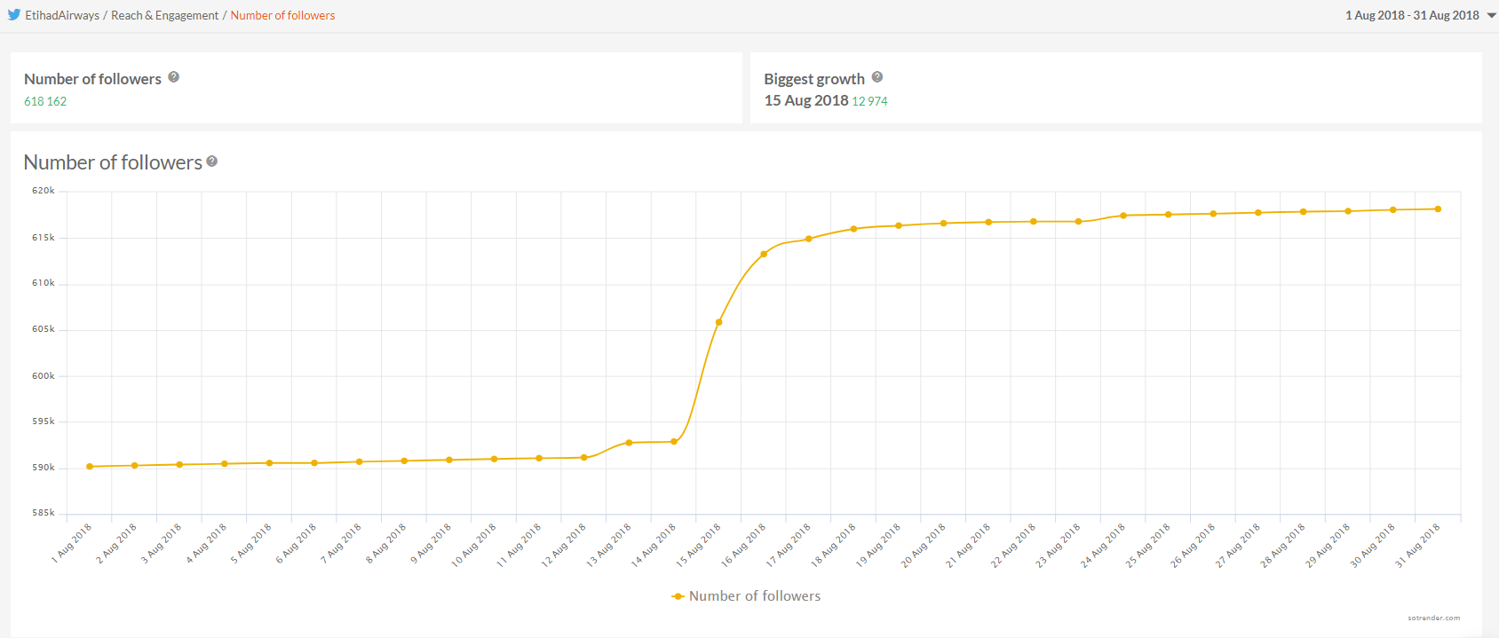 This tweet announcing the partnership with a football club – AlNassr Saudi Club – brought Etihad Airways more than 12k new followers in a single day!