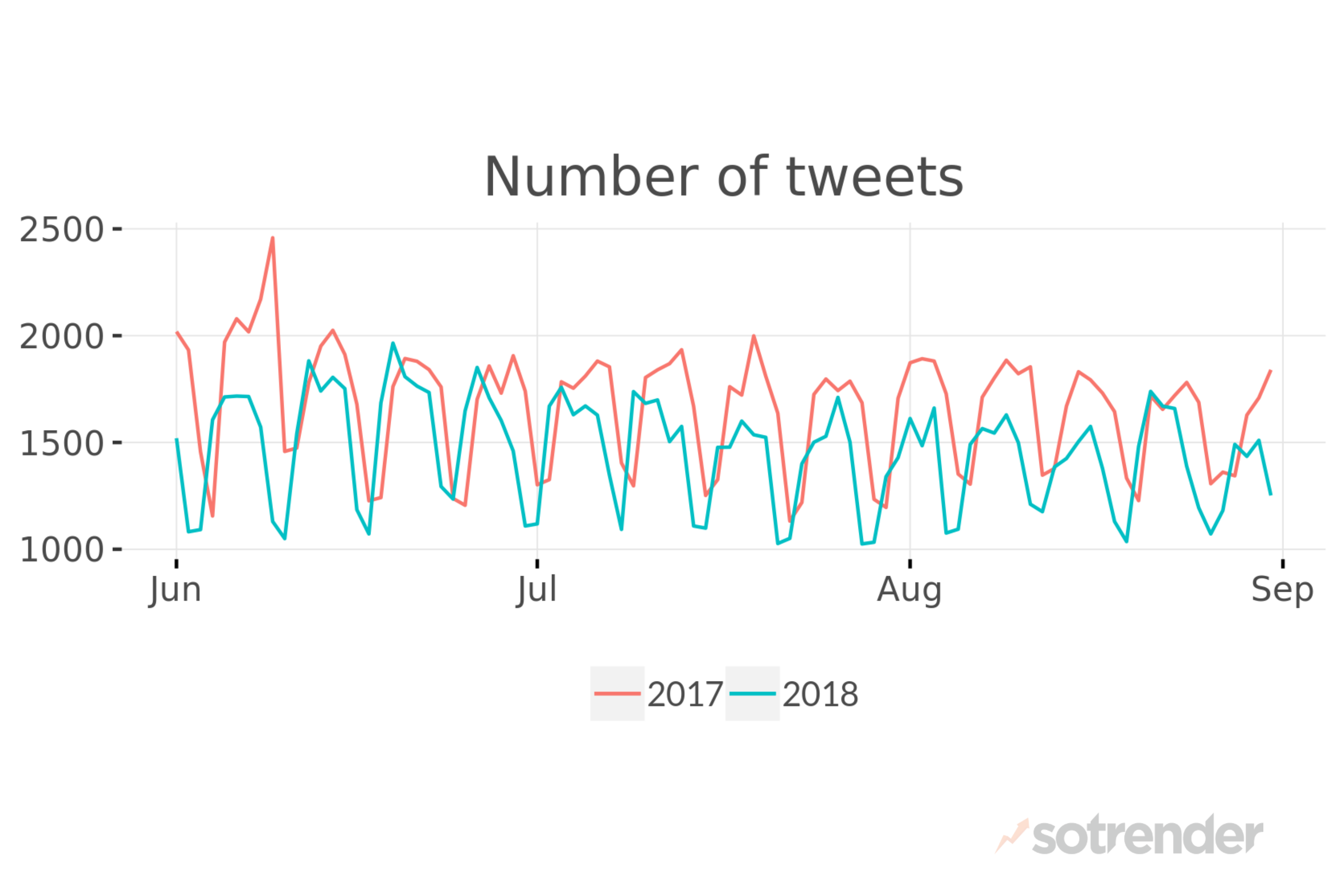 The first conclusion of our analysis is that generally, we tweet less than in 2017.