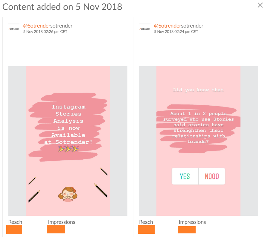 If you gamified your Stories on Instagram, you would want to know if it worked. Connect your Instagram profile to Sotrender’s tool, and access the Content tab. You can select Top Stories to find out which Stories performed better to adjust your content strategy.