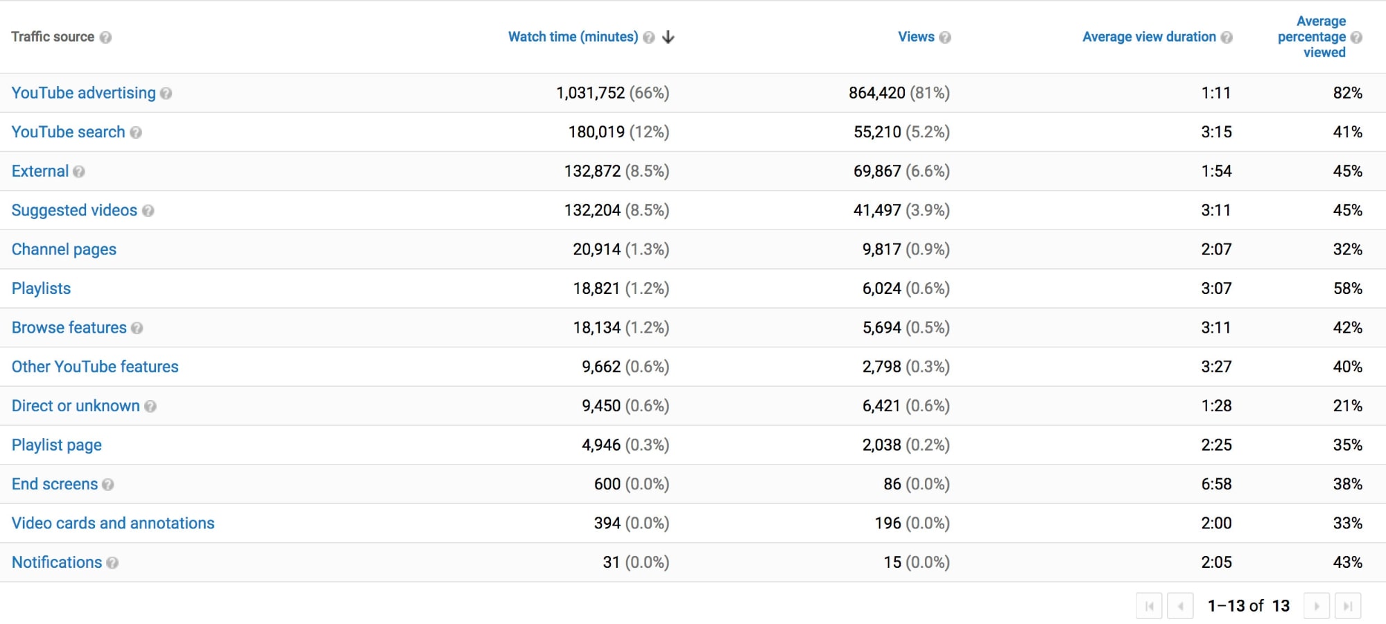 Traffic source for views – This feature in particular measures how people arrived at watching your videos. Right from the referral sites to the ones which people are punching into YouTube search, everything is included here. Being the second most popular search engine in the world, paying close attention to traffic sources is of prime importance for a business to succeed. But that’s not all there are others: