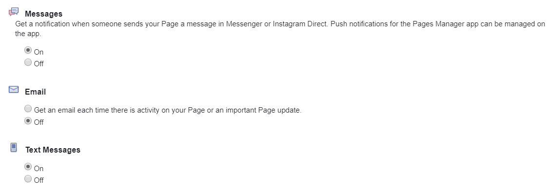 Once you log off of Facebook, you won’t know what’s being said on your Page unless you have email or push notifications on. The downside of having some notifications active is that you’ll be notified about two separate activities at the same time.