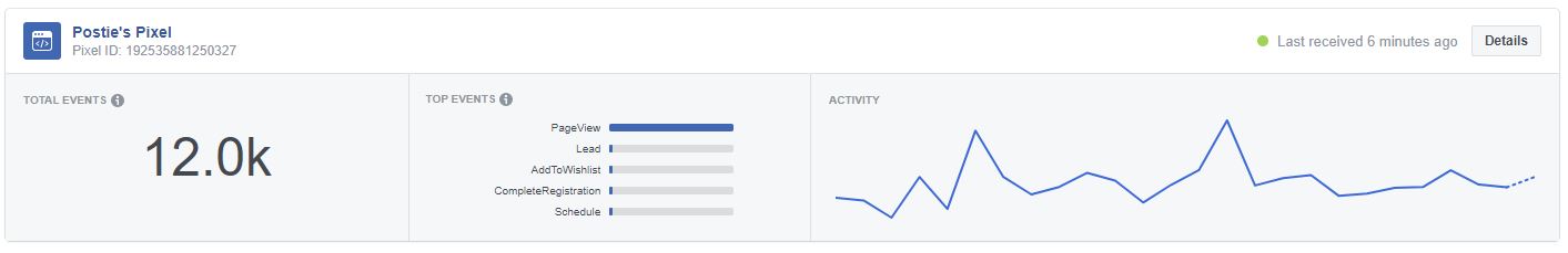 The process is pretty simple: first, Facebook Ads Manager gives you a code snippet to paste on the pages you want to track. Once you’ve added it into your site’s code, you’ll head back to Ads Manager and configure what you want it to track. Once it’s all set up, it will start gathering and displaying data, like so: