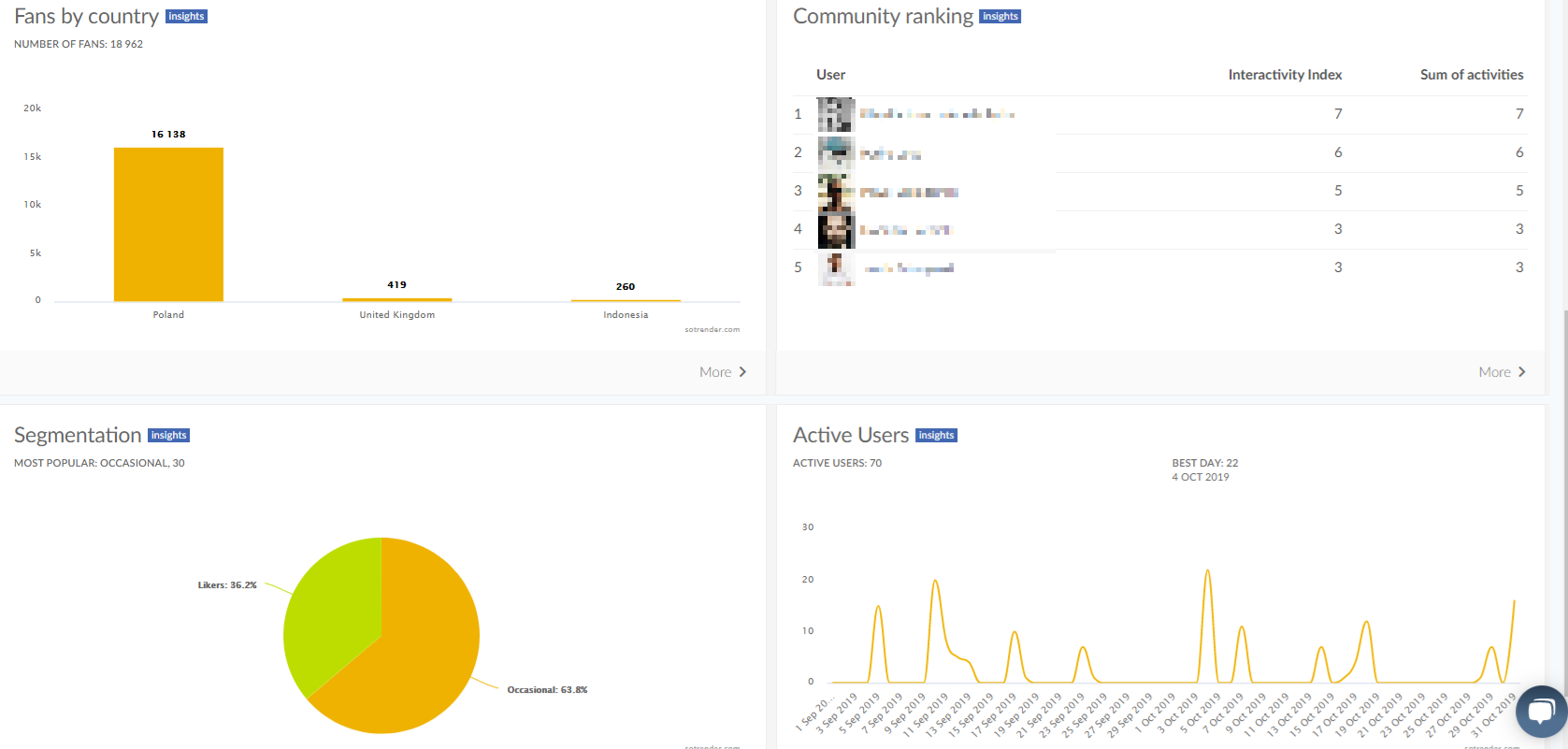 Aside from the built-in analytics, the other option is to use an external tool. Sotrender, for example, allows you to add your social media profiles to the tool and analyze your audience, your performance metrics, and also export your profiles’ data quickly.