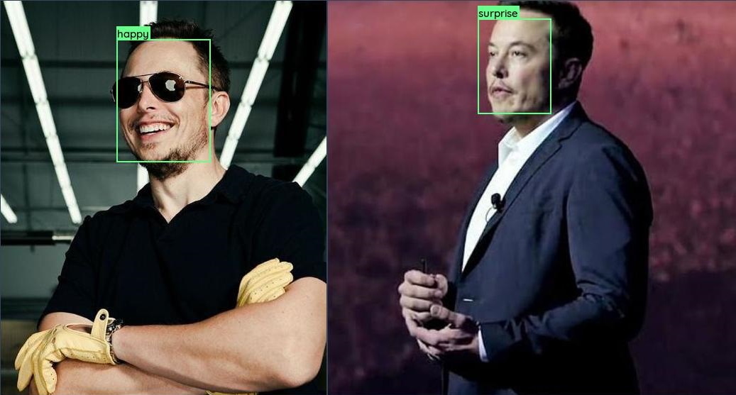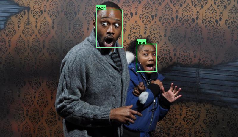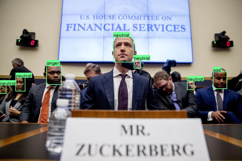 And finally we’re at the emotion classification step. We’ll feed these images into the second model to try to recognize their emotions. The images will no longer be cropped, but instead be presented as the original image with a prediction.