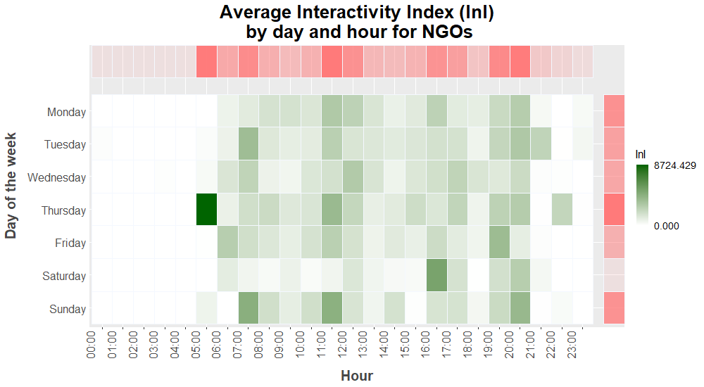 Users that liked NGO Pages on Facebook tend to interact more with their content than those of university Pages. As we might have guessed, there are several days that work well for NGOs.