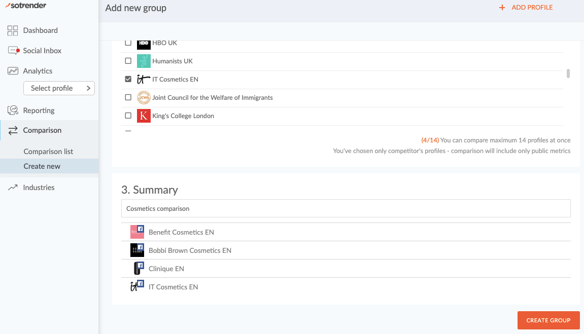 To track your competition, you can add their profiles and organize them into groups.