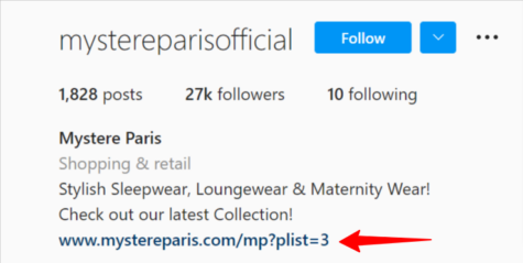Instagram allows users to add one external link in their bio. Hence, this is a prime location where businesses can persuade followers to click through and visit their home page, a specific campaign page, a newly launched collection, or a lead capture page.