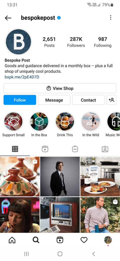 Instagram also allows you to add a contact button to your profile like Call, Buy Tickets, Email or Order just like Bespoke Post has done.
