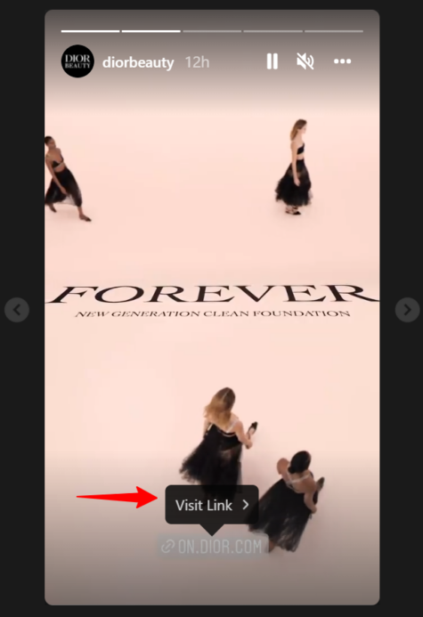 Notice how Dior Beauty has added a link to its stories that take viewers to their target page, making it easy for them to shop for their favorite brand.